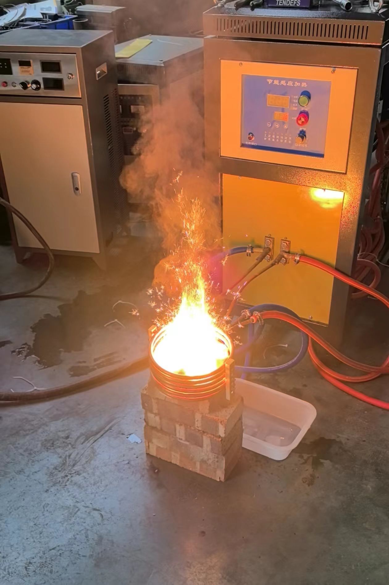 采用全數字芯片,由出色的軟件算法實現高效穩定運行,采用動態電感識別技術,自動識別線圈參數,自動調整加熱狀態,采用三種調制方法:調頻、調脈寬、動態頻率調制結合脈寬調制的雙調技術,設備生產過程水電隔離安全可靠。